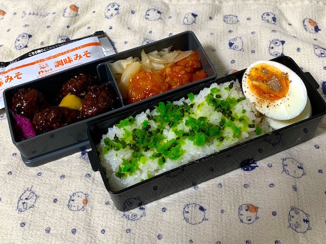 メインは肉団子甘酢(60円半額)とエビチリ(60円半額)。少量パックはホンマに捗る。